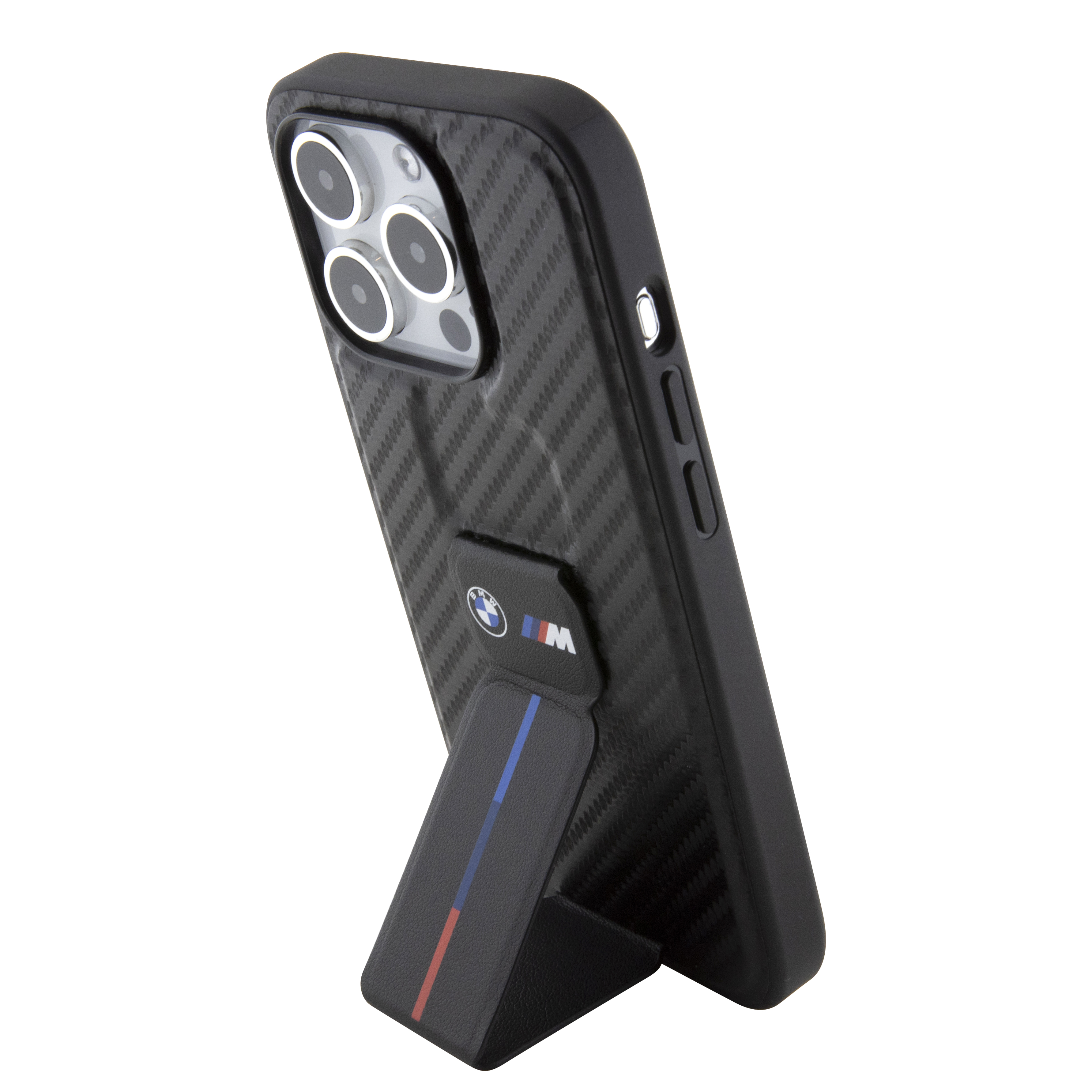 iPhone 15 Pro - BMW PU Leather Black Grip Stand Smooth And Carbon Desing